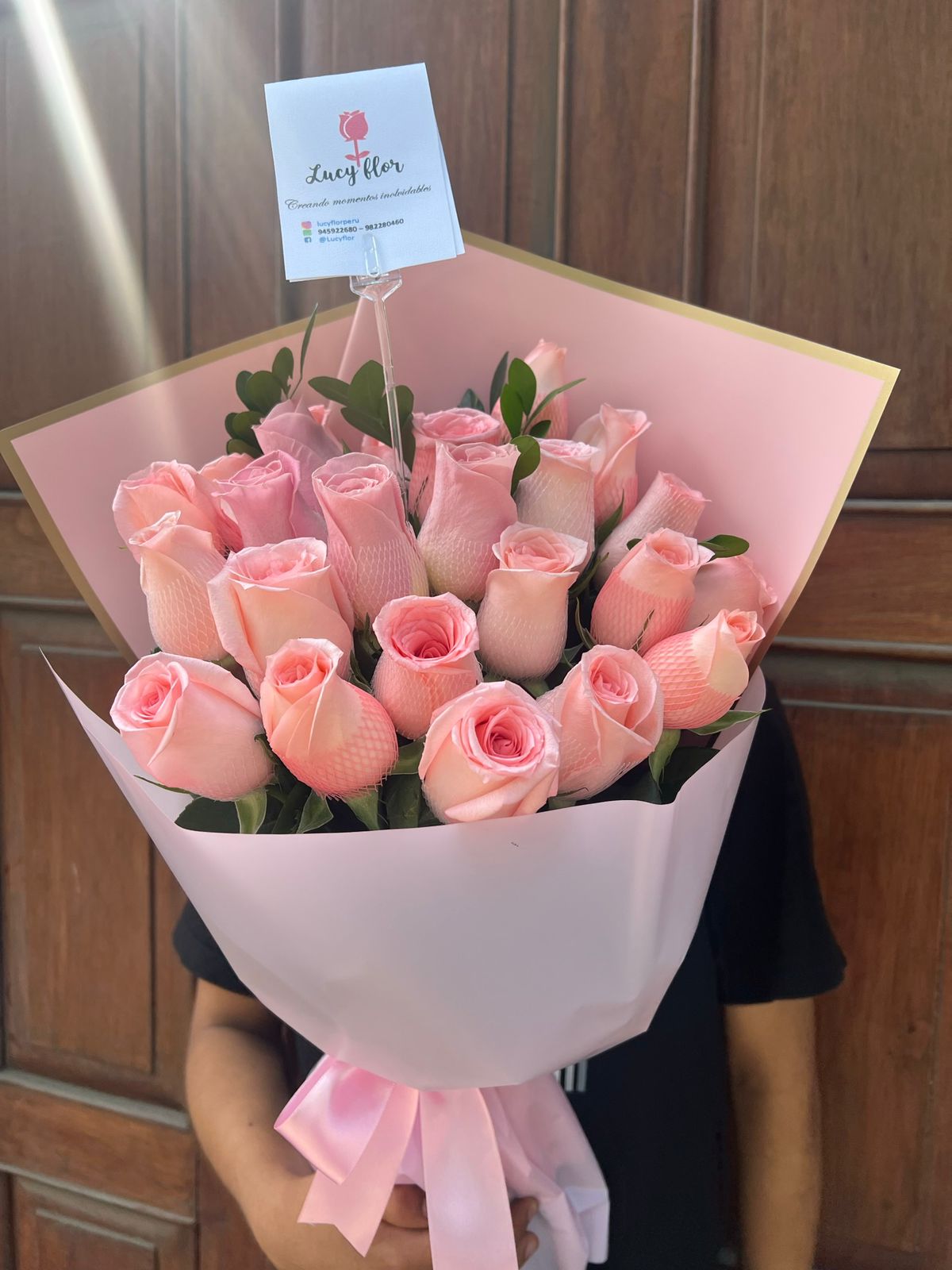 Este ramo de rosas palo rosa es una expresión perfecta de ternura, dulzura y amor. Con sus delicados pétalos, es ideal para cualquier ocasión. El empaque de papel coreano añade un toque de elegancia y simplicidad.